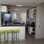 Cozinha em cerâmica com bancadas em granito e armários planejados